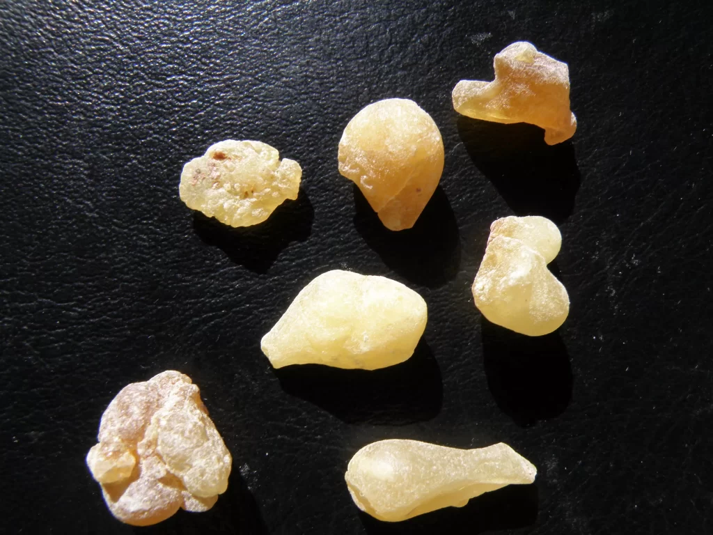 و25% منها صمغ يتضمّن حمض البوزويليك boswellic acids (يتمتع بخواص مضادة للميكروبات)